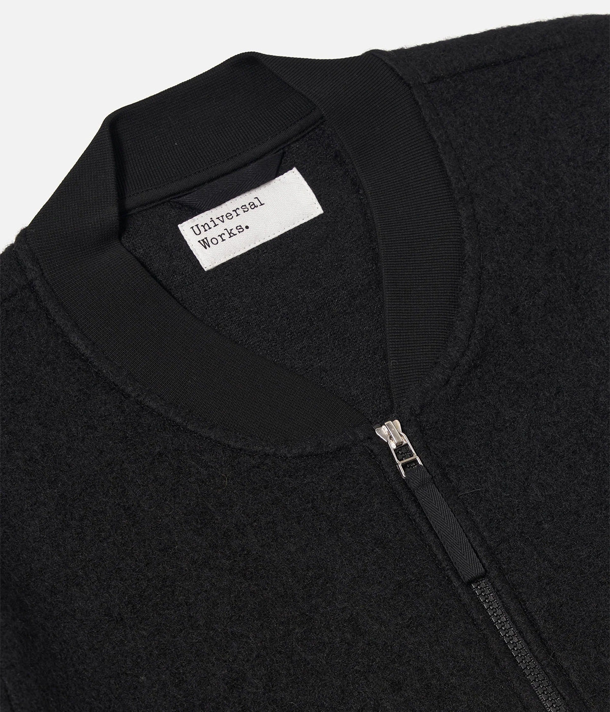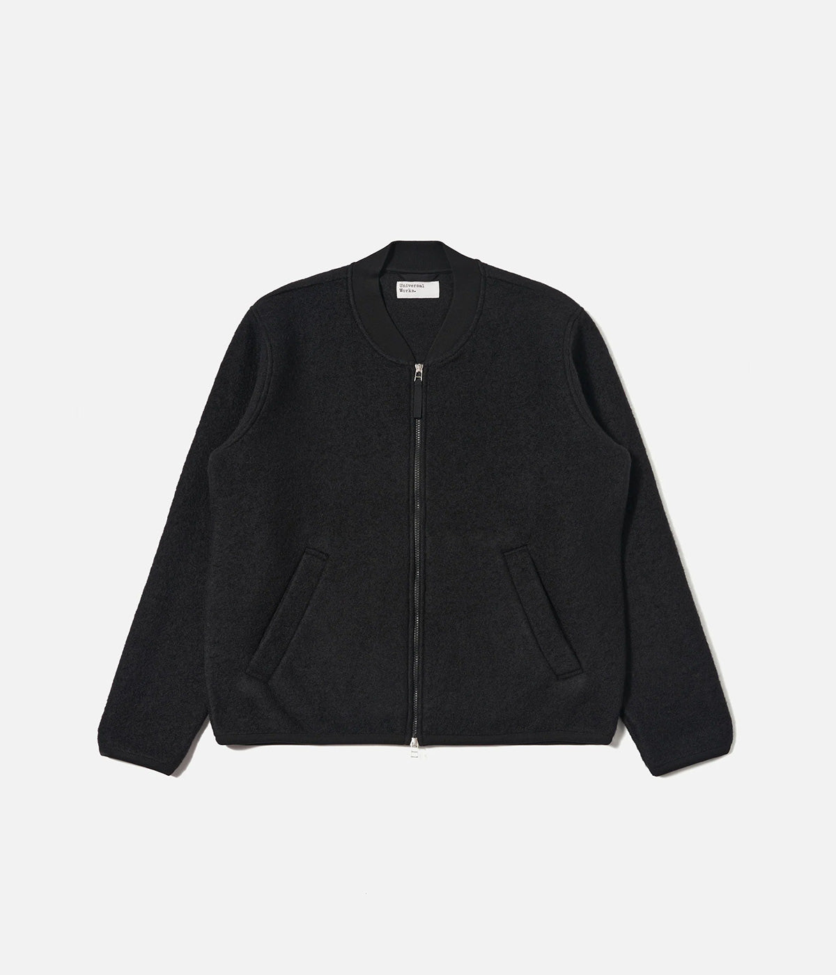 UNIVERSAL WORKS ZIP BOMBER WOOL FLEECE 00018 BLACK