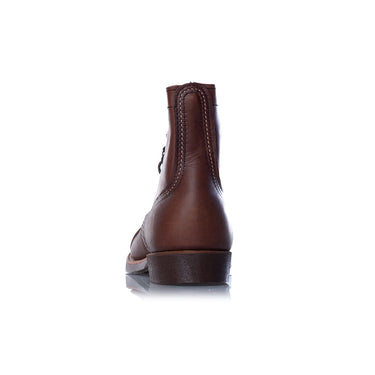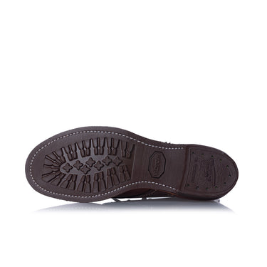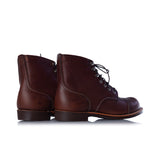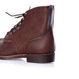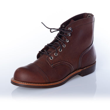 The Red Wing 8111 Iron Ranger is undoubtedly one of the most popular models in our collection. Almost every employee owns a pair, because it goes with practically everything, whether you wear trousers or jeans. The 8111 Iron Ranger features a Vibram 430 outsole. This outsole offers increased traction without bulk. This shoe is named after the miners of the Meseabi Iron Range in northern Minnesota, who desperately needed footwear that could withstand the rugged terrain. Even then, the leather-reinforced toe box and sophisticated heel construction successfully withstood the most adverse conditions. The dark brown Amber Harness leather, produced by the company-owned SB Foot Tannery tannery, is one of our most popular leathers and the Vibram 430 sole is extremely durable thanks to its very low reduction. If you are looking for a different color, we offer this model in a multitude of variations.