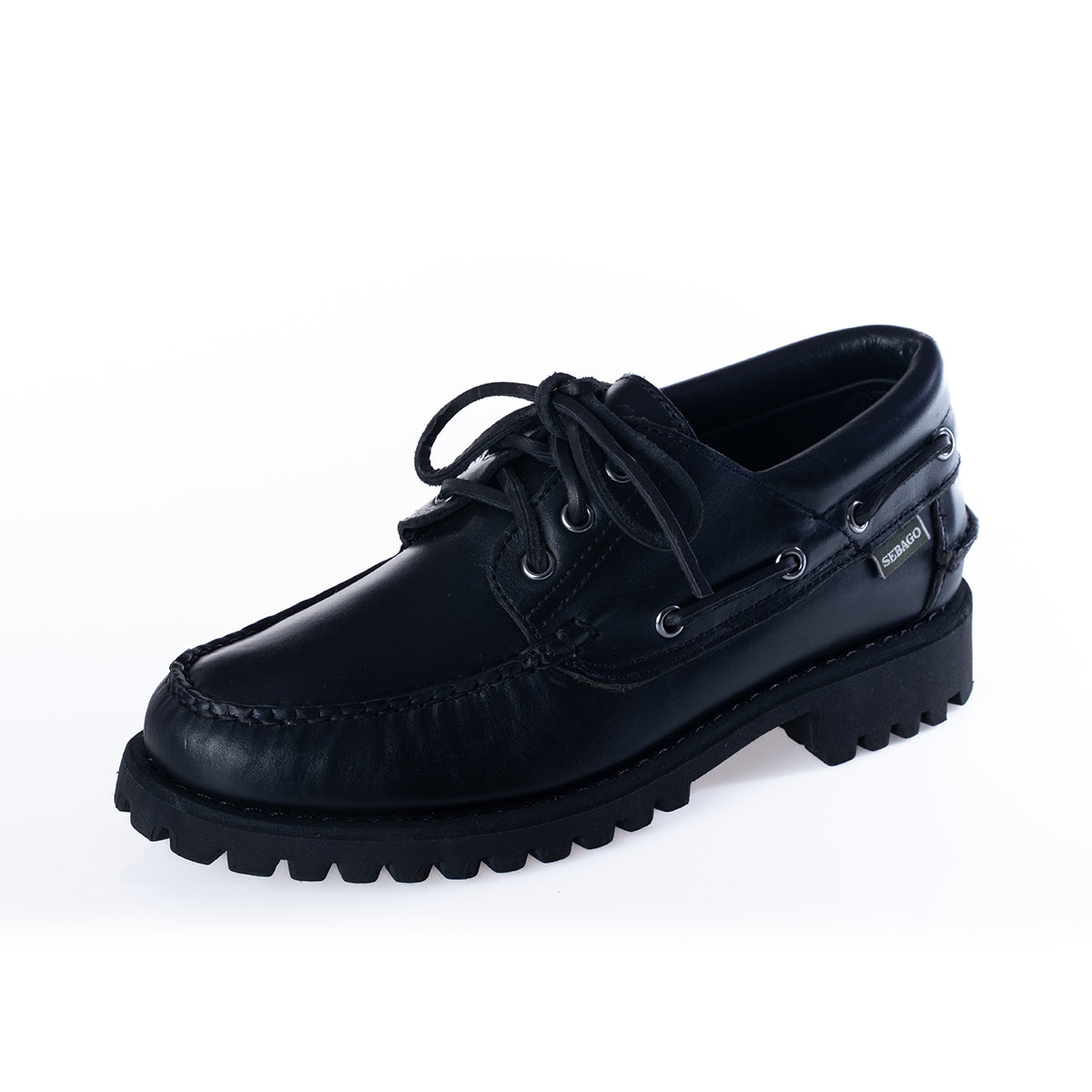 New total black color for the iconic Sebago Acadia. Premium leather uppers treated with oils for greater weather resistance, these iconic hand-stitched durable moccasins will take you everywhere with honey-colored rubber commando outsoles for maximum traction and grip, durable and flexible strobel construction, padded collar and 360° three-eyelet rawhide lacing system for a custom fit and long-lasting comfort. Hot-stamped logo on the side. The "Acadia" moccasins were inspired by the great diversity of terrains and habitats of Acadia National Park along Maine's Atlantic coast and made to enjoy them all.