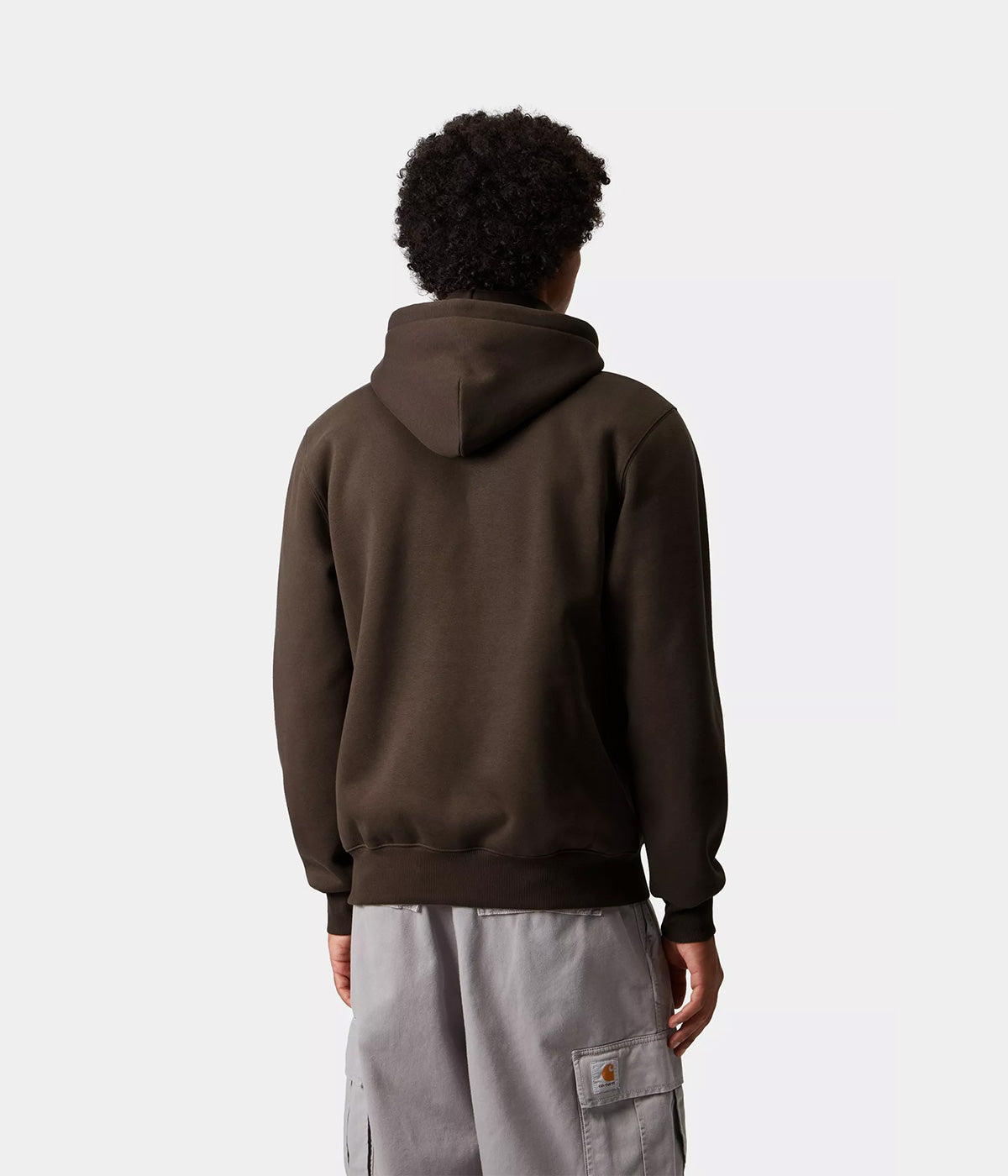 The Hooded Carhartt Sweatshirt is made in a loose fit from heavyweight, brushed polycotton jersey, meaning it has a soft fleece-like backing. It also features a kangaroo pocket, as well as a ribbed hem and cuffs. An embroidered Script Logo appears on the chest.