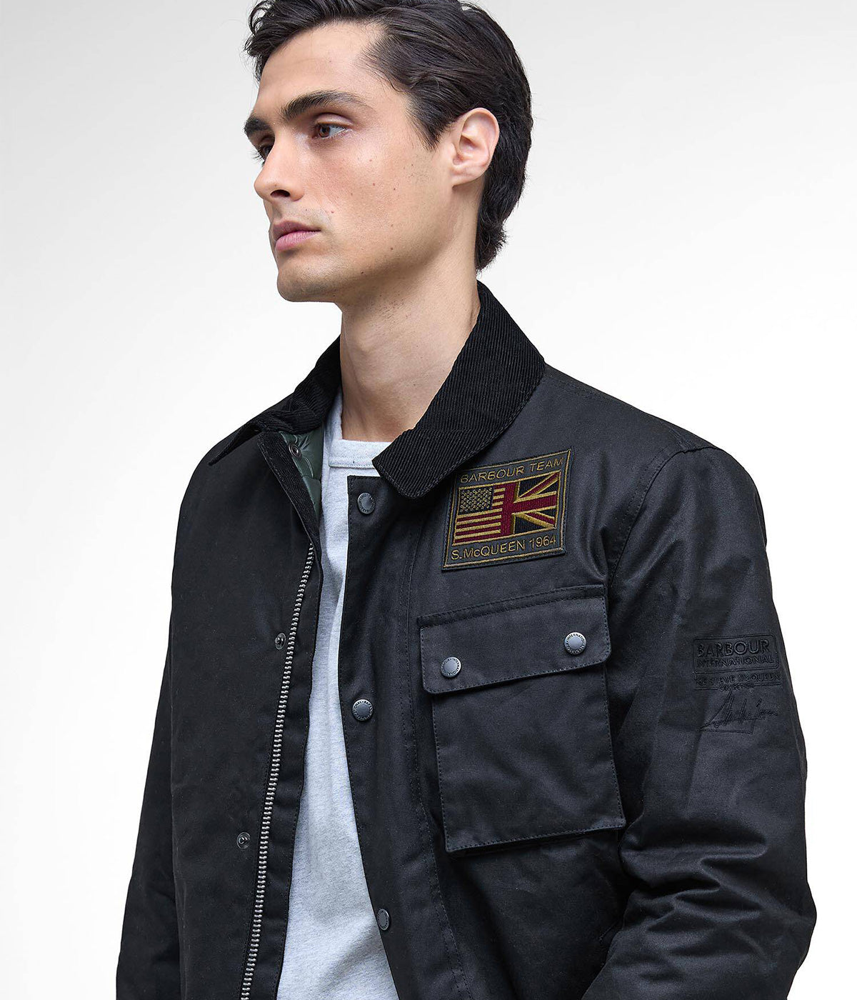 Dalla collezione Steve McQueen, la giacca Barbour International Workers Wax aggiunge un tocco di raffinatezza a qualsiasi outfit, grazie alla fodera quadrata trapuntata che garantisce comfort e calore e al colletto in velluto a coste per un contrasto di tessuto complementare. L'abbottonatura frontale con bottoni metallici nasconde una cerniera per proteggerla dalle intemperie, mentre i polsini e l’orlo sono regolabili per una vestibilità perfetta. Due tasche a filetto e una tasca sul petto con bottoni metallici aggiungono praticità senza rinunciare allo stile. Il ricamo Barbour International Steve McQueen è applicato sul petto a sinistra.