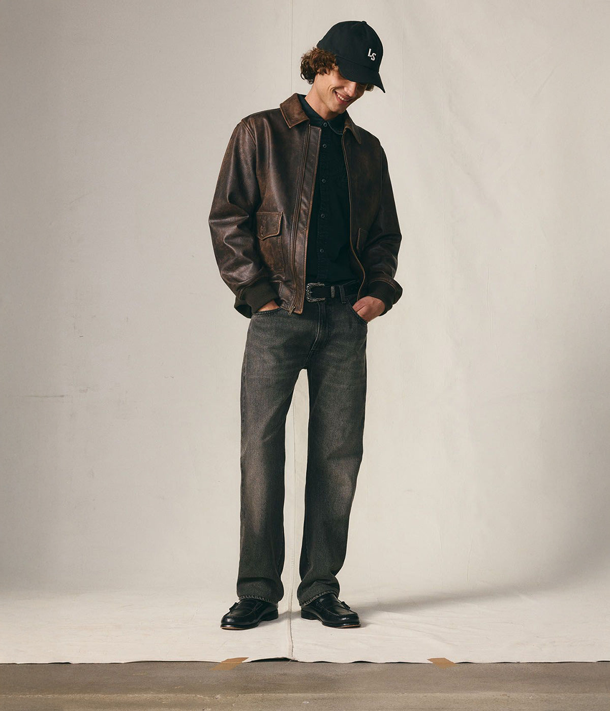 LEVI'S CLAYTON LEATHER AVIATOR JACKET 003AU-0000 BROWN LEATHER BRACKEN