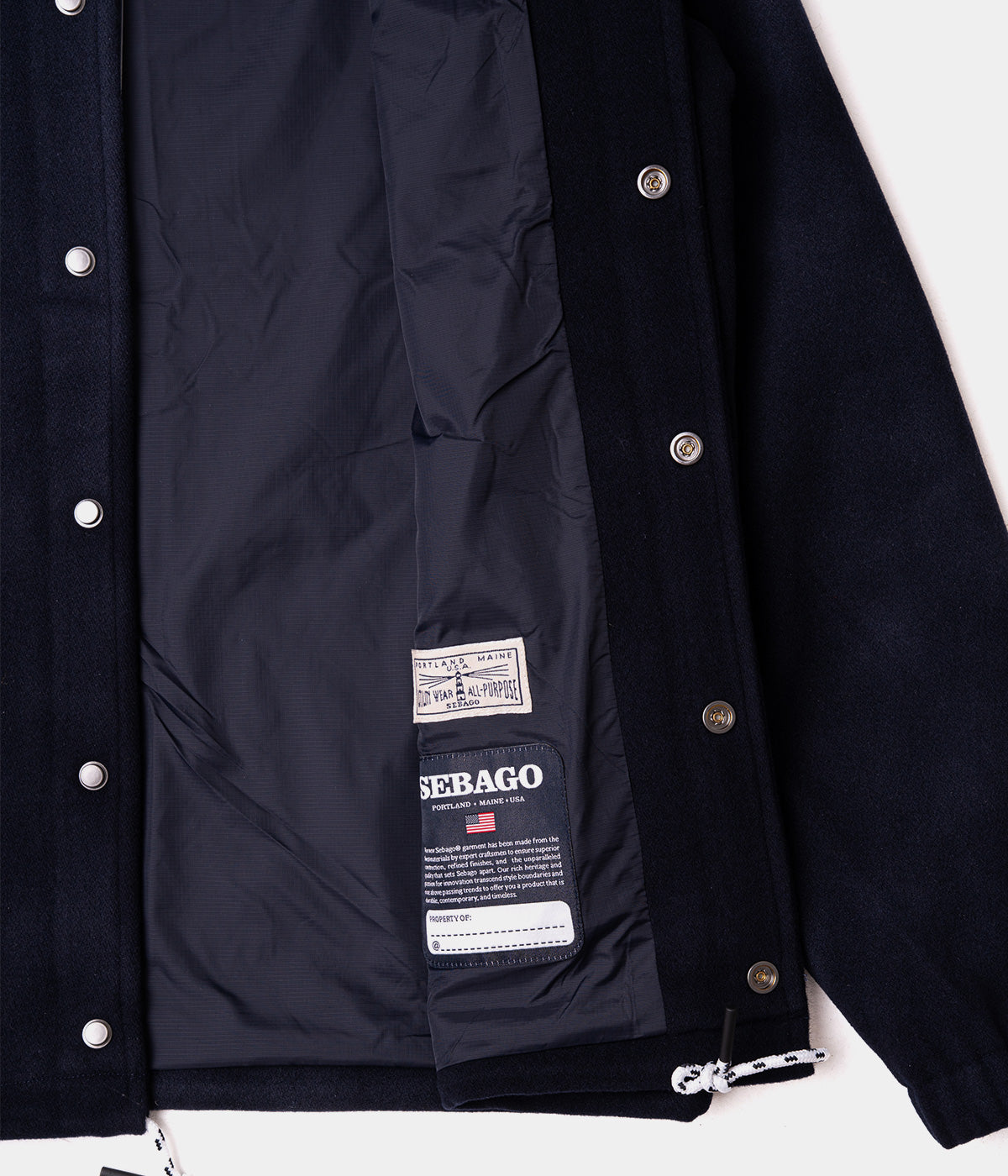 The Tender Wool Jacket by Sebago is a wool sports jacket that is suitable for any type of occasion. Raglan sleeves, snap buttons and adjustable drawstring at the bottom. Perfect for any outfit, from fleece trousers or worn over an oxford shirt with tie, you will be surprised by the flexibility of this jacket.