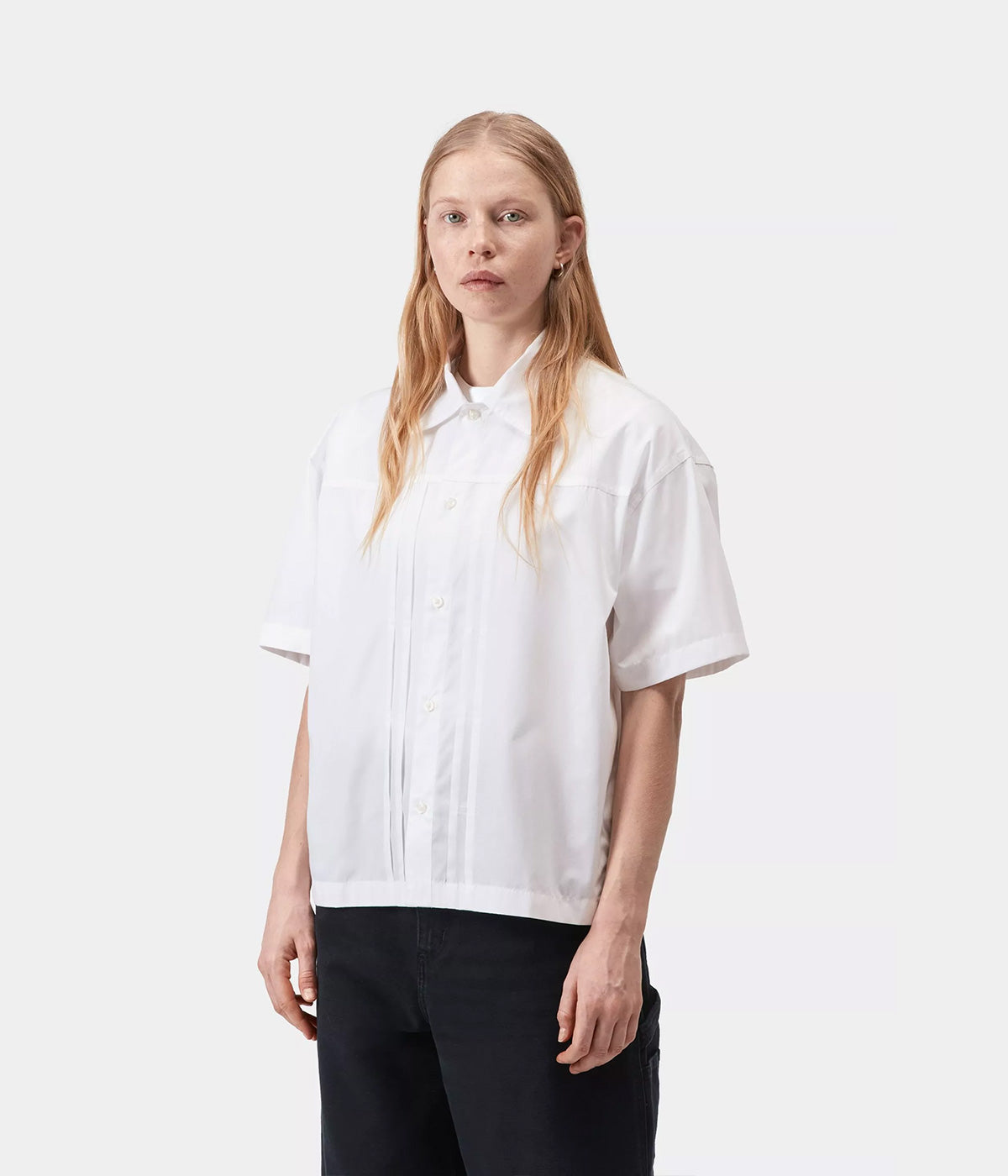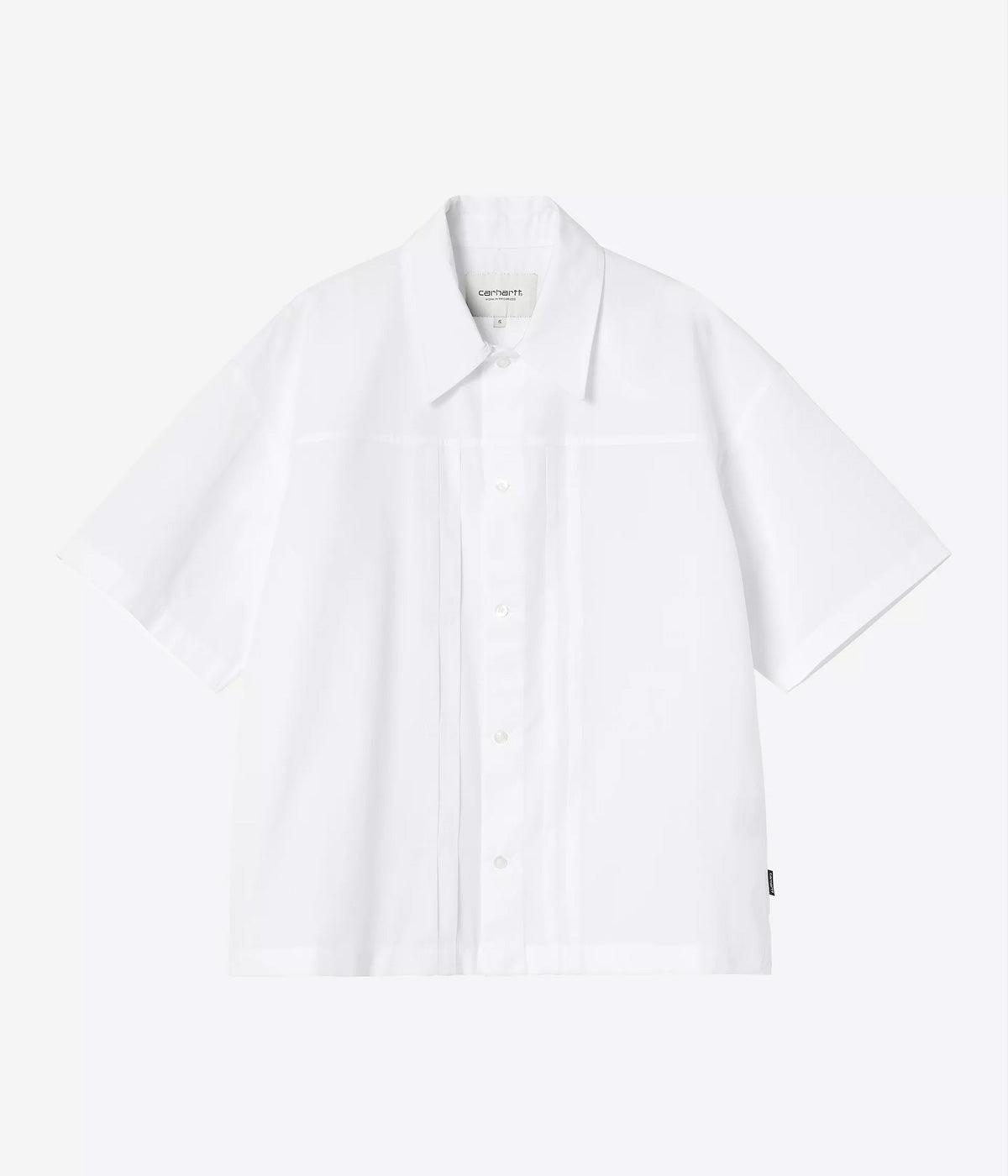 The Women's S/S Belmont Shirt is made of lightweight polycotton poplin, has a loose fit and has been washed for extra softness. There are box pleats on the front and a further pleat on the back. A flag label finishes the garment.