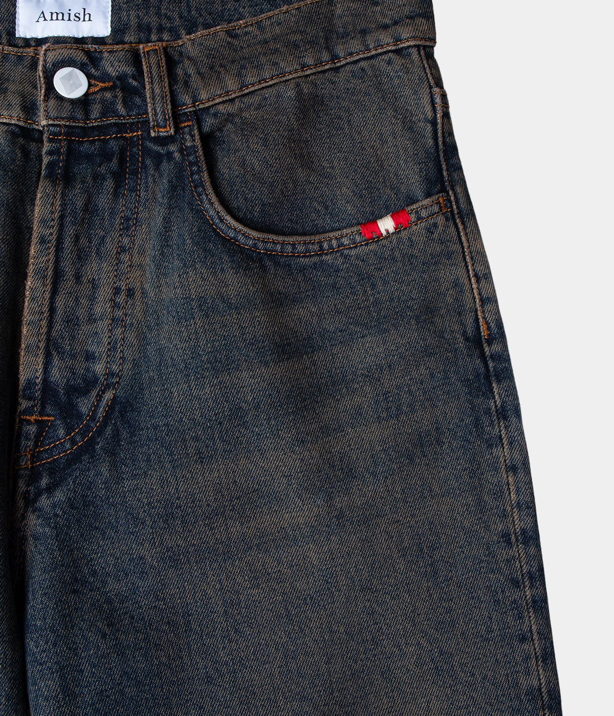 Due tasche sul fronte e due tasche sul retro con ricamo in filo in contrasto.