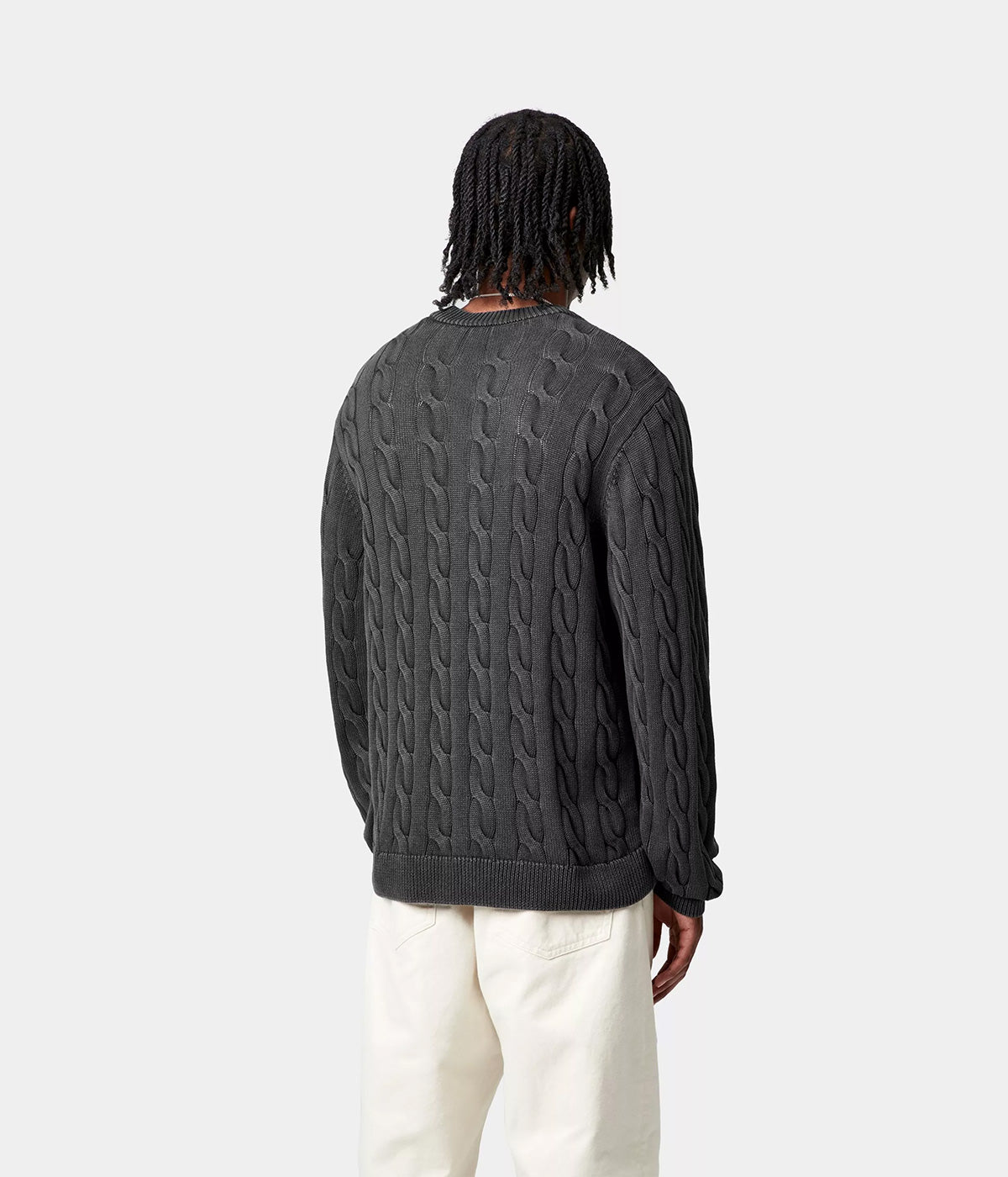 Il Carter Sweater è una maglia di medio peso realizzata in filato di cotone con motivo a trecce. Sul petto campeggia il ricamo del logo “C”.