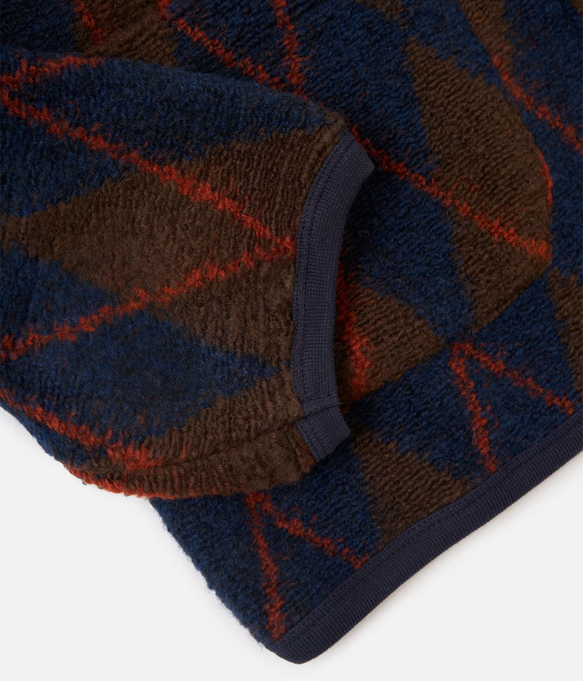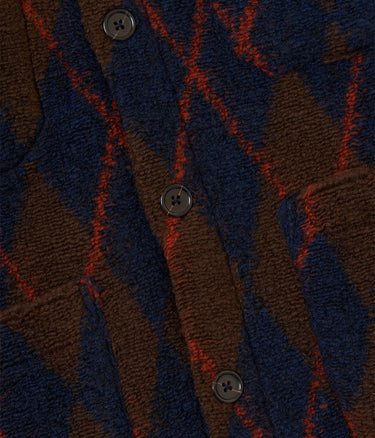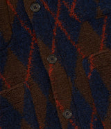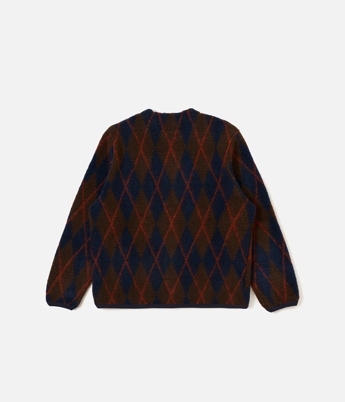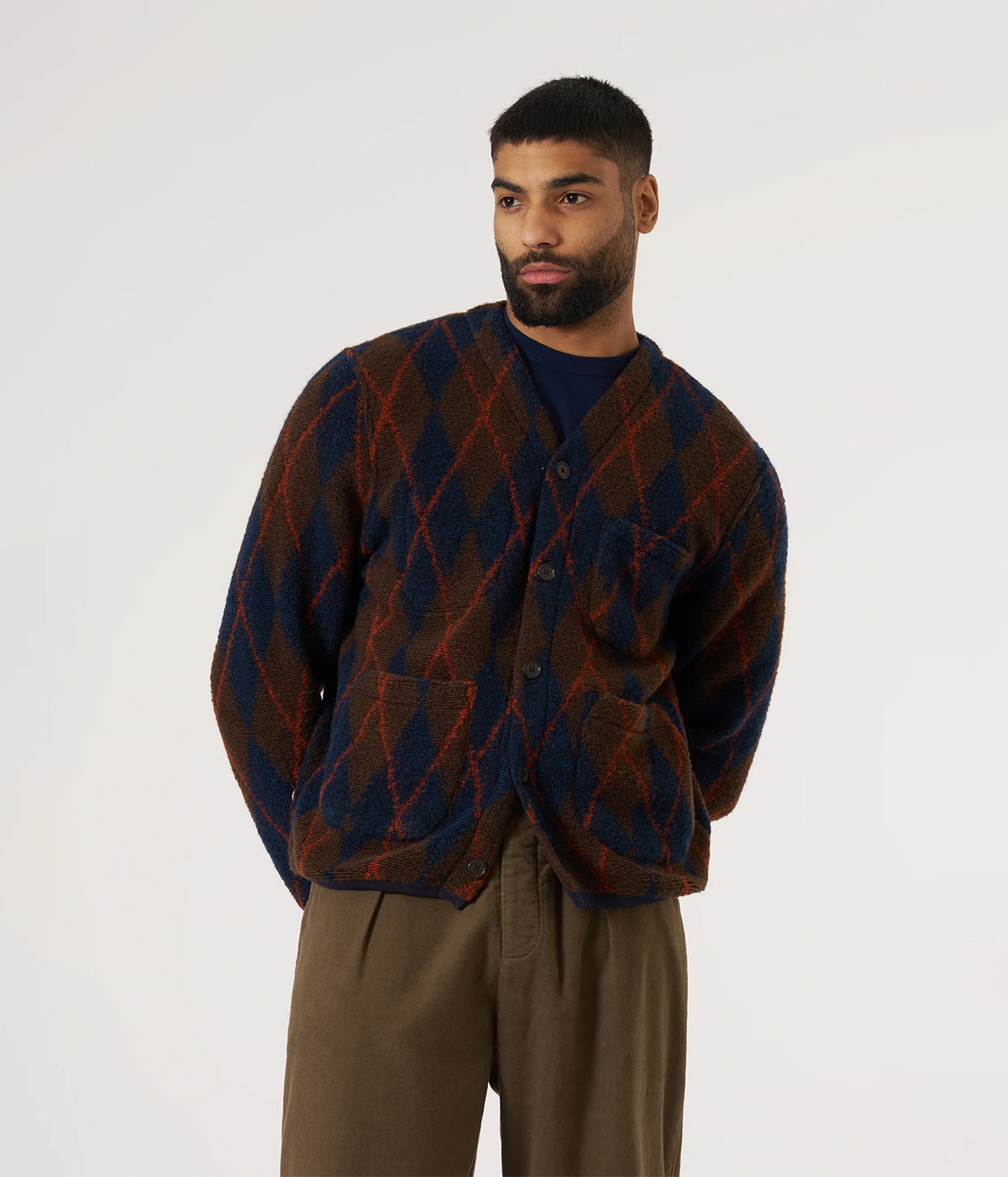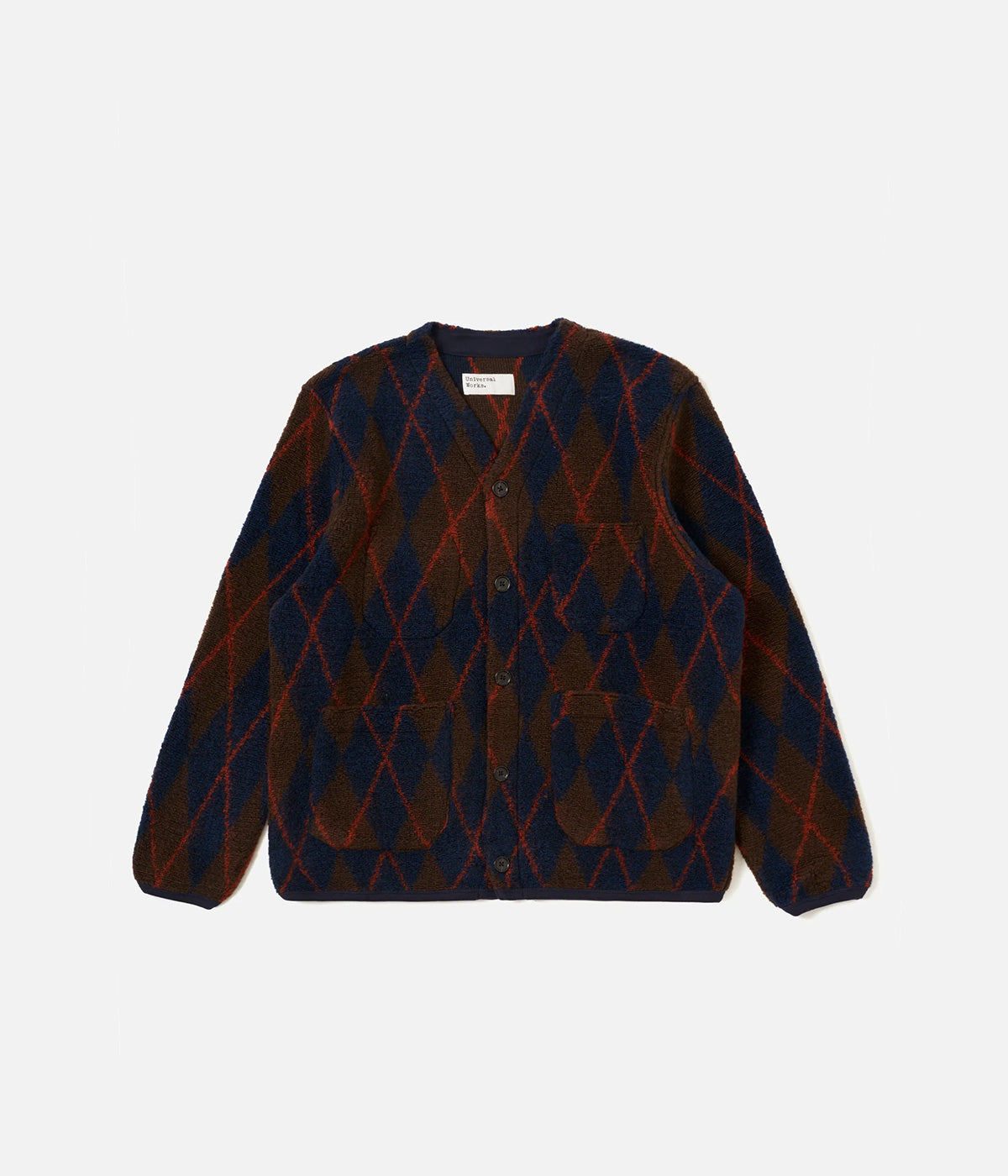 UNIVERSAL WORKS ARGYLL FLEECE CARDIGAN 33721 BROWN NAVY