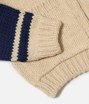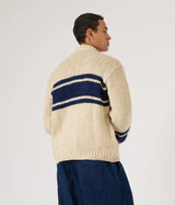UNIVERSAL WORKS LANGDALE CARDIGAN 33479 CHUNKY KNIT STRIPE SAND