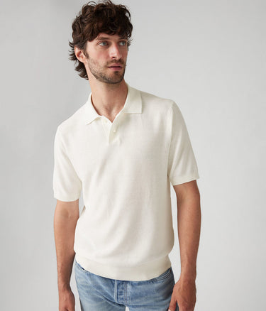 LEVI'S SWEATER KNIT POLO A7294-0010 LINEN SEED STITCH WHITE