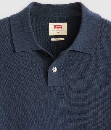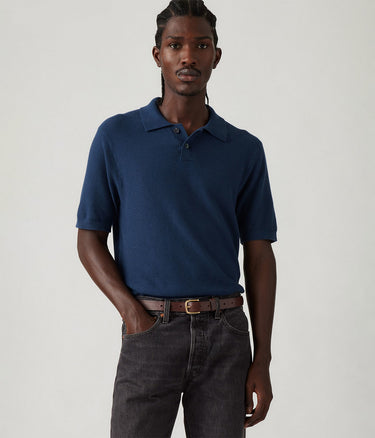 LEVI'S PULL TRICOT POLO A7294-0012 ROBE BLEU COTON LIN MÉLANGÉ