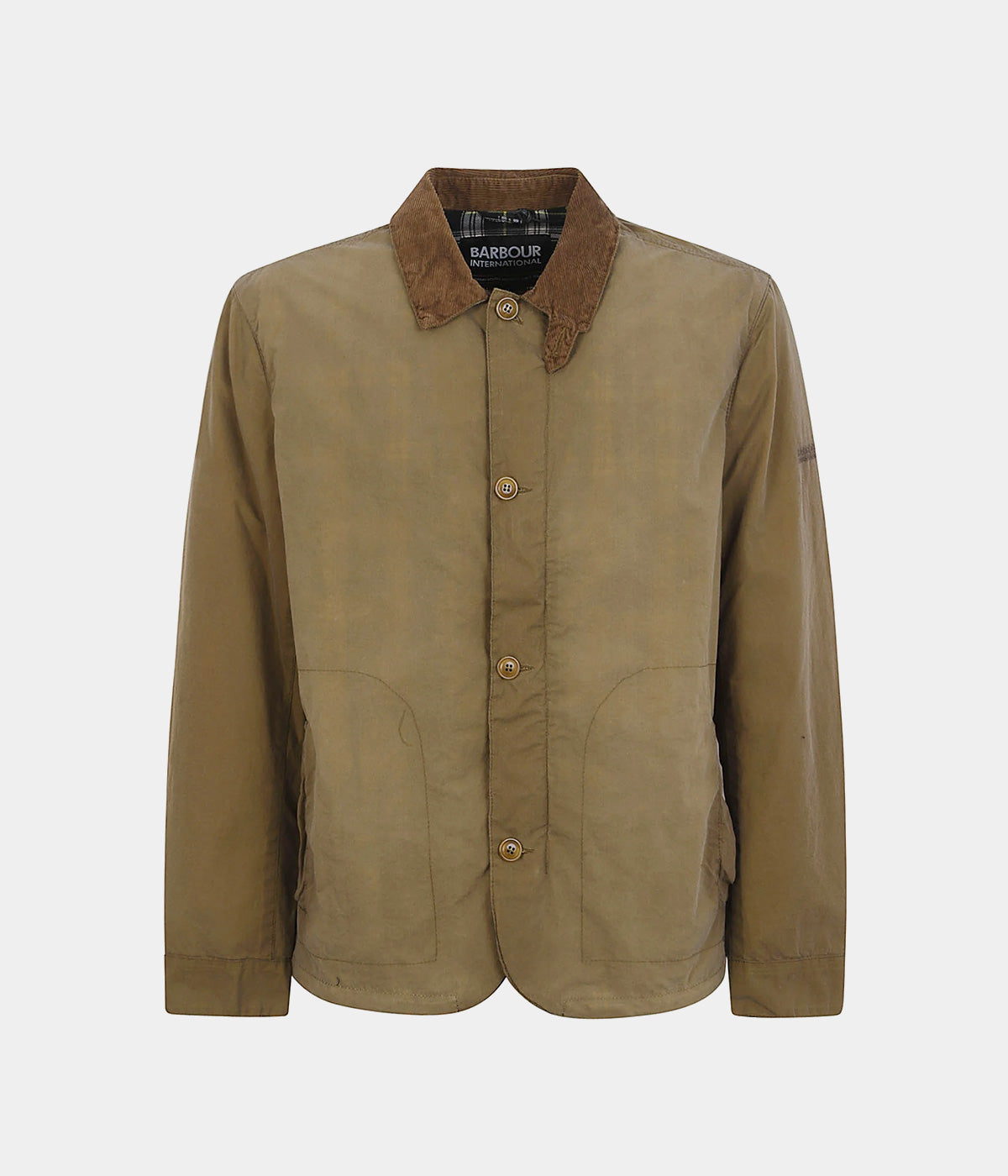 Badge Barbour International nero e oro antico sulla manica sinistra.