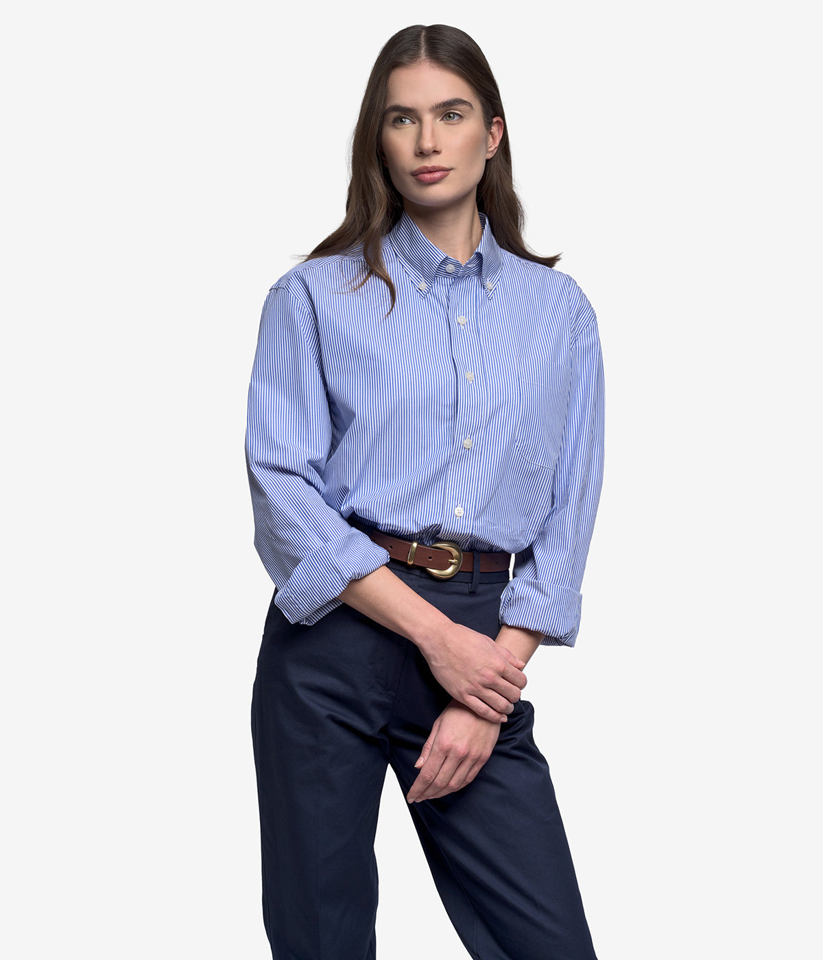 Oakland è la camicia in popeline di cotone a righe che unisce un fascino senza tempo ai dettagli grafici distintivi di Sebago. Nato sui campi da polo alla fine dell’Ottocento, il modello button-down è diventato un’icona intramontabile, amata dagli studenti dei campus americani, dai Mod inglesi e dalle star americane. Sebago reinterpreta questo classico con un taschino sul petto, pinces sulle maniche e l’inconfondibile gancio sul retro per appendere comodamente il capo. L’interno dell’abbottonatura è impreziosito da un'etichetta logata, dettaglio che aggiunge un tocco di raffinatezza. Il nome della camicia è un omaggio alla cittadina di Oakland, situata nel cuore del Maine (USA), circondata da laghi cristallini e boschi rigogliosi. Un luogo che incarna lo spirito autentico e senza tempo della tradizione Sebago.