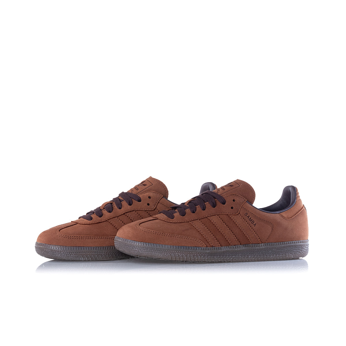 Inconfondibile stile casual per questa Adidas Samba OG che presenta una preziosa tomaia totalmente in nabuk premium su una classica suola gum dark brown.