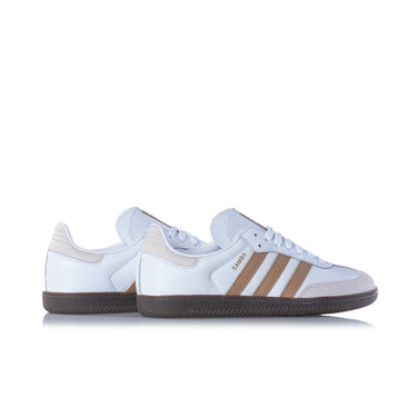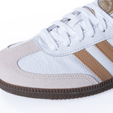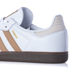 Versione ultra classica per l' iconica Adidas Samba OG che presenta una tomaia in pelle premium bianca con stripes colo cammello e back heel crema.